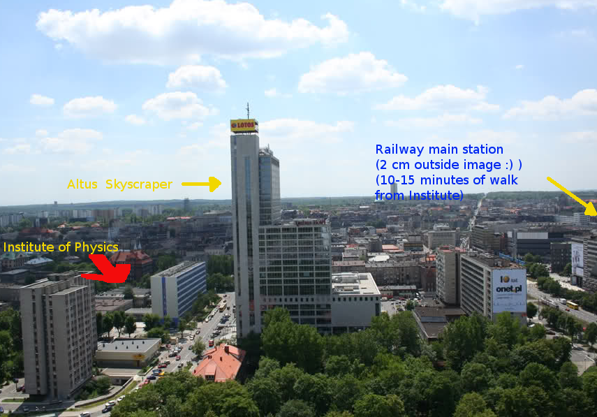 From Katowice Central Station You can walk (10-15 minutes) (see map) to Institute of Physics.